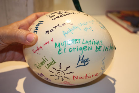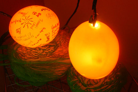 Mixed Media: Halogen Bulb, Ostrich Egg, Sharpie Marker, Electrical Tape, Polyurethane, Metal.